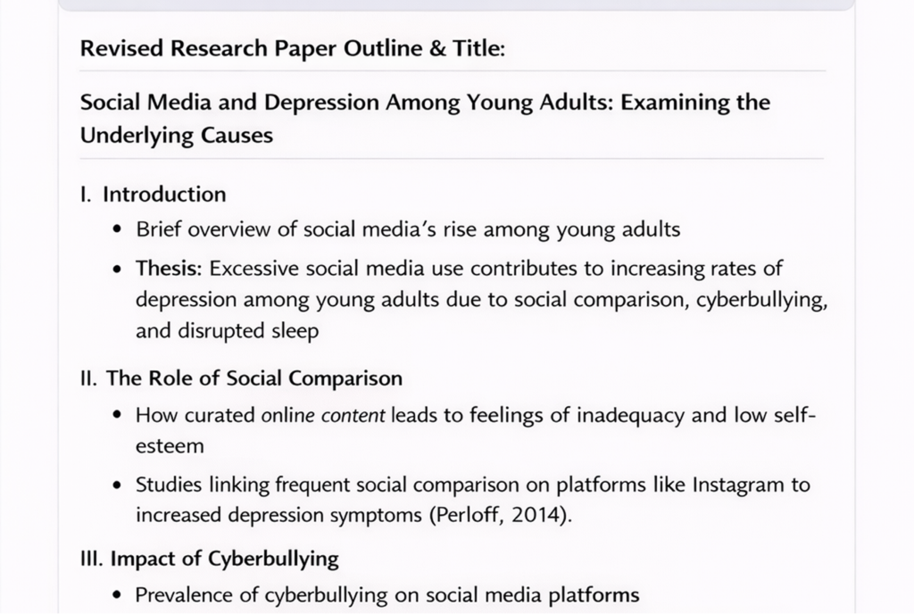 “Please make the outline more analytical and less descriptive. I need a clearer thesis and more distinct section logic. Also, revise the title to reflect a narrower and more specific angle.”